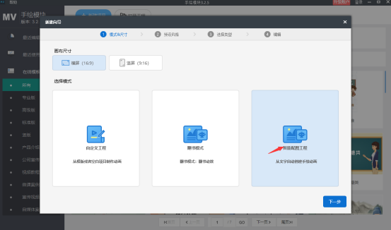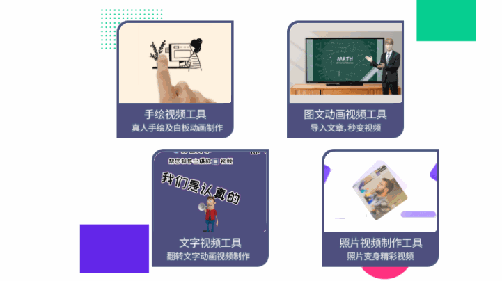 输入文本智能配音、智能语音识别生成字幕、分分钟解决字幕配音问题,无需下载其他软件进行操作,这里支持自定义工程(从“无”到“有”的创作)、翻书模式(翻书动效)以及智能配图工程(用文字自动创建手绘动画),