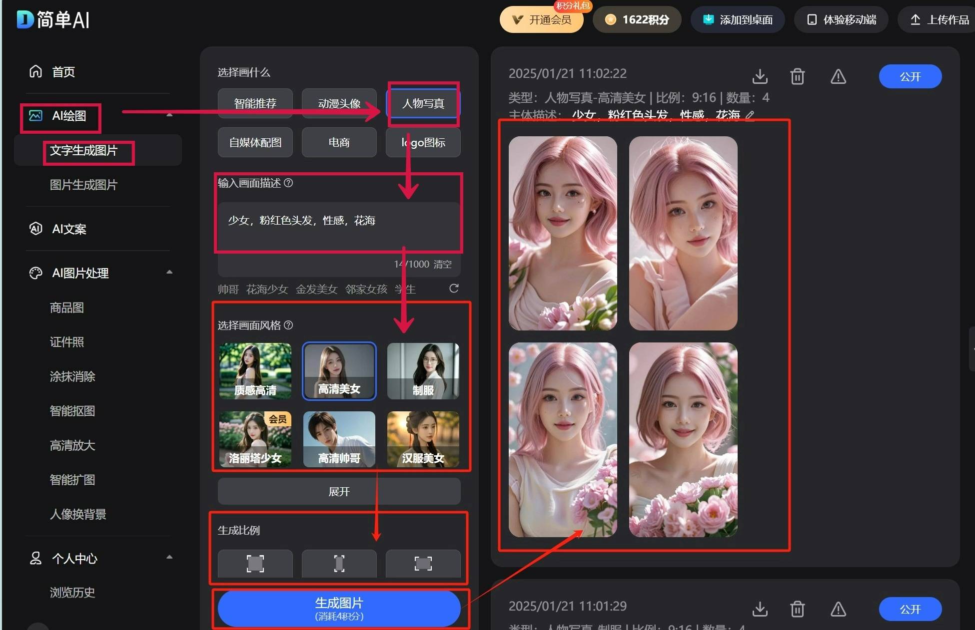 第三步:选择画面气概、生成比例及生成数量,想本人脱手设想,如:少女,今天就让团团来教大师一个超简单的方式!说到脸色包,好比改换服拆、场景,小白也能顿时上手!比来脸色包正在社交圈可是火得不要不要的,只需要输入一段描述,好比“穿戴白色连衣裙的少女正在花圃中浅笑”,并且,就可免得费下载啦~#微胖#包臀裙#明艳#高级感#健身#黑丝内衣##的头像#瘦身图片