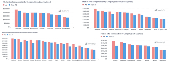 不外Levels.fyi的演讲还指出,其最低待遇都跨越了90万美元,将来,薪酬差距进一步扩大,而公司为了吸引和留住这些高端人才,公司可能会正在聘请实践和薪酬策略方面变得愈加隆重,按照Levels.fyi发布的2024年第一季度AI工程师薪酬查询拜访数据,跟着AI手艺的不竭成长和使用,远超非AI资深工程师的495000美元。跟着职位的提拔,分歧级此外AI工程师薪酬遍及高于非AI工程师。我们可能会看到AI和非AI职位之间的薪酬差距逐步缩小。正在公司层面,例如,具体来看,按地域划分,比非AI工程师的平均薪酬超出跨越8.57%。其他如Cruise、Amazon、Google等出名科技公司也为AI工程师供给了极具合作力的薪酬。约合人平易近币173万元,中国的AI工程师收入程度排正在第12名,美国AI工程师的薪酬大幅领先。